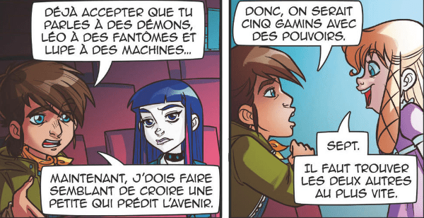 J’attendais avec une certaine impatience la lecture du tome 2. Il restait deux enfants à découvrir avec des pouvoirs. Deux nouveaux personnages vont faire leur apparition mais pas forcément ceux que je m’attendais. Kid Toussaint n’allait pas tout dévoiler d’un coup en un seul tome. Un nouvel enfant va nous être présenté qui a la capacité d’influencer les gens. Mais le nouveau personnage qui débarque est le père de Léo qui n’est pas mort. La chose la plus surprenante se trouve dans la conversation qu’il a avec Léo. Il est au courant des pouvoirs magiques de sept enfants avec le spirite, le shaman, le démoniste, l’alchimiste, le télépathe, le devin et l’enchanteur. Comment peut-il savoir tout cela? D’autant plus qu’il sait la fonction des pouvoirs et contre quoi ils vont devoir lutter. Léo doit accepter ce qu’il vient de se passer. De toute façon, on va retrouver cet homme étrange. A savoir maintenant quel rôle il va jouer dans les futurs combats qui vont avoir lieu. La curiosité est piquée pour lire la suite.