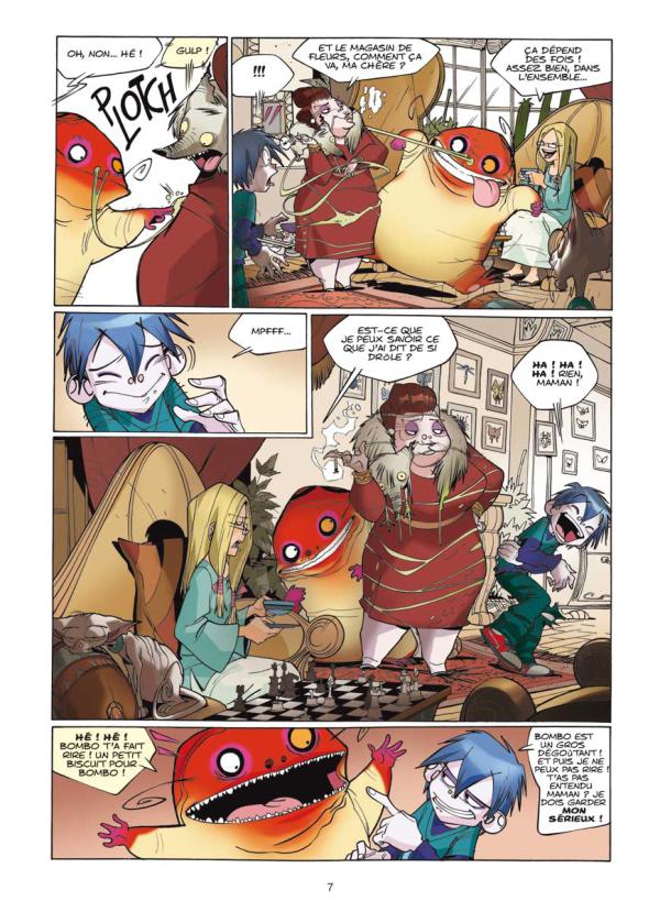 J’ai adoré la partie avec les monstres qui mettent en place un piège pour ennuyer Elena. Mais comme la tâche de planter une graine ravageuse est confiée à Bombo, il est certain que cela sera mal fait. Il est gentil ce grand et dodu monstre mais qu’il est bête. Une occasion d’insérer un peu de légèreté dans une histoire qui s’annonce assez périlleuse. Que peut faire un monstre avec des chats ? Et que font des monstres sous l’apparence d’humains ? Il va falloir que les grands-parents fantômes de Zic et les monstres se réunissent pour faire le point sur la situation. D’autant plus que Thimothy, le chat sans poil, a été enlevé. Par chance, il est en compagnie du chat pas très malin Frou Frou. Les informations nous sont données au compte-goutte. Une bonne stratégie pour nous faire lire encore et encore. Un pari réussi car j’ai hâte d’aller me plonger dans la suite afin d’en savoir plus et de savoir qui se cache derrière ce terrible complot.