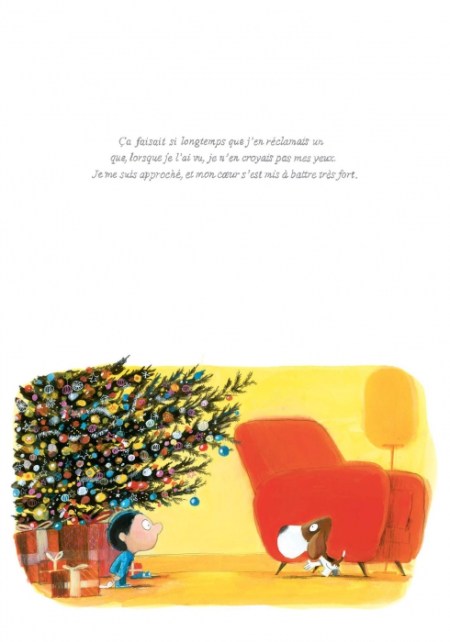 La curiosité est piquée. On se pose confortablement et on ouvre le livre. D’un côté le texte et de l’autre l’image. Au début, on pourrait croire que c’est la simple histoire d’un enfant qui voulait un chien. Mais quand on fait attention au texte et que l’on regarde bien l’image, on comprend que ce n’est pas vraiment ça. Si le chien marche sur ces deux pattes arrière ce n’est pas un hasard. Olivier Tallec ne laisse jamais de hasard dans ces histoires. Il adore jouer avec ces lecteurs, qu’importe leur âge. Il laisse le doute planer avec des similitudes comportementales entre l’enfant et le chien. Le dessinateur n’oublie jamais d’intégrer son humour pince-sans-rire, toujours discret et efficace.