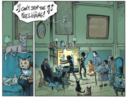 Des questions sociétales qui ne concernent pas uniquement la France. Car même Mimile, va aussi se montrer solidaire quand il va apprendre ce qui se passe sur l’île de Nauru. Les australiens avaient ouvert un camp d’internement des réfugiés capturé dans les eaux internationales. Une petite manne financière pour l’île qui connaît un taux de chômage de 90%. Pour parler de ces choses très sérieuses, le scénariste n’oublie jamais de mettre une dose d’humour. Par exemple le nom de la société écran, son vrai nom est Dave Hiock et Demi Grants qui se lit des viocs et des migrants. Que c’est malin. Sans oublier leurs actions étonnantes et leurs arrestations par la police. Et on n’oublie pas notre Sophie qui veut avoir une vraie famille autour d’elle. Elle va tout faire pour rapprocher son père de son grand-père (grands moments d’émotion garantis) et va renouer avec les parents du père décédé de sa fille Juliette. Encore des vieux qui viennent se greffer dans l’histoire ce qui promet de belles réunions de famille qui ne vont pas manquer de remue-ménage. L’ensemble est servi par la précision du dessin et la malice Paul Cauuet sans oublier les couleurs dynamiques de Jérôme Maffre.