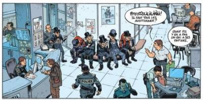 Il m’avait manqué le gang de ces vieux. Quel plaisir de les retrouver dans ce cinquième tome encore plus irrévérencieux et engagés. Wilfrid Lupano comme à son accoutumée dans cette série, il aborde des sujets de fond et d’actualité. Alors il n’hésite pas à traiter du sujet des réfugiés. Ces personnes qui doivent mener un combat pour trouver une place dans la société. Afin de ne plus les voir, on place des cailloux dans les lieux où ils squattaient. La gang de « Ni yeux, ni Maître » a de la suite dans les idées. Comme cette entreprise « Hiock ans Grants », un pseudo fond d’investissement où des migrants puissent venir s’habiller en costume cravate afin de mieux présenter pour faire des démarches. Au final, ce n’est pas la misère qui dérange les gens. C’est la misère visible qui pose problème. « ce ne sont pas les étrangers qui font peur mais les étrangers pauvres ». Avec un costume Hugo Boss, plus de problème de contrôle de papier et c’est plus pratique pour trouver un emploi.