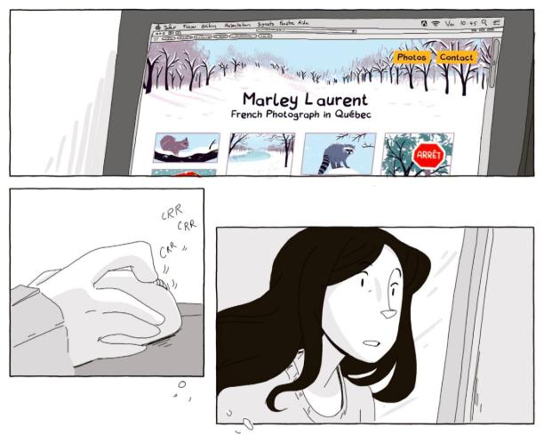 Mais c’est un milieu difficile, alors elle a pris un travail de barista pour gagner sa vie comme boulot alimentaire. Sa passion pour la photographie a été mise de côté. Bien entendu qu’elle autorise Coline pour s’inspirer de son travail. Cette première prise de contact s’intensifie avec des partages de dessins et de photographies. Puis petit à petit les questions deviennent plus personnelles et une amitié sincère pointe le bout de son nez. Alors quand Vincent décide d’aller passer du temps avec ces amis aux Etats-Unis, Marley en profite pour descendre en France rendre visite à ces parents. Cependant, elle en profitera pour faire un détour par le Périgord à la rencontre de Coline. Quelque chose se passe entre elle, le courant passe plutôt bien. Même très bien car un baiser sera échangé avant son départ. Une fois retournée à Québec, tout change. Son couple lui semble sans intérêt tout comme son travail. Il lui faut un nouveau départ pour une nouvelle vie.