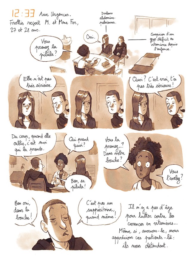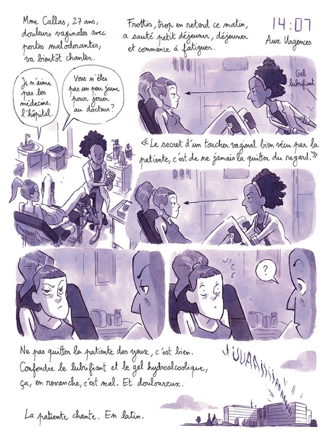 La bande dessinée se déroule sur 7 jours où le jeune médecin fréquente aussi bien la mort que la vie. Le dessinateur Dominique Mermoux met beaucoup de douceur et de chaleur dans ces dessins. Il trouve toujours le juste milieu pour ne jamais tombé dans la sensiblerie ou l’excès. Les pages se tournent avec plaisir et surtout avec sourire.