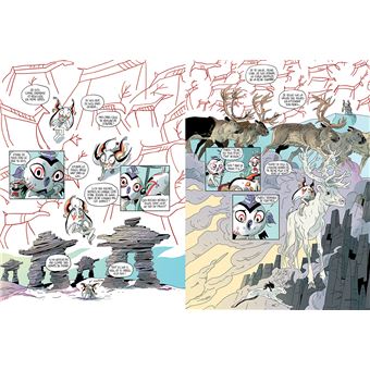 Les légendes des peuples premiers sont d’une très grande richesse et restent assez peu exploitées en bande dessinée. Thomas Gilbert et Fabien Grolleau décident d’inscrire leur série « Nordics » au coeur de divinités inuites. La nature trouve un équilibre entre le ciel et la terre. Et quoi de mieux qu’un décor de glace pour y placer une histoire fantastique. Un univers où le bleu et le vert contrastent avec la présence du blanc. Et où on peut trouver des divinités assez atypiques pour en tirer des personnages plus surprenants les uns des autres. L’ensemble créé une histoire dynamique où l’ennui n’a pas sa place. En plus, les dialogues assez courts facilitent la lecture pour les plus jeunes ce qui permet de plus se concentrer sur l’action. L’originalité est une force dans cette bande dessinée qui peut pousser le lecteur à découvrir une culture souvent méconnue. Aucun doute que d’autres tomes vont par la suite faire leur apparition et nous emmener vers de nouvelles rencontres étonnantes.