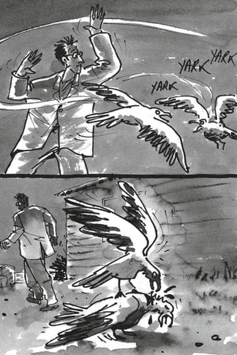 M. Mercier vient voir Chato car il a besoin de ses services. A ce qui paraît il pourrait lui louer un canot à moteur pour se rendre sur l’île du pet du diable. Chato le prévient qu’un produit modifie le comportement des oiseaux et qu’il est dangereux d’y aller. Mais l’homme sait très bien ce qu’il veut : « C’est précisément ce gaz qui m’intéresse ». Chato refuse catégoriquement et s’enivre dans le rhum qu’il apprécie tant. M. Mercier ne va pas s’arrêter à cela. D’ailleurs, sa copine qui l’attendait dans la voiture, il va l’abandonner sans aucun scrupule. Quelque chose d’important se trame au point de négliger l’amour. De son côté, le policier, le senor Delgado vit tranquillement. Du moins, c’était jusqu’à ce qu’il trouve une chaussure avec un pied dans le frigo à côté des bières. L’inspecteur Cobillas lui devait trouver le reste du corps sur la plage. En attendant, la police doit interroger M. Mercier. Peut-être que ce pied est celui de son ancienne compagne? Qu’importe. Le plus important pour M. Mercier est de récolter des échantillons de gaz sur l’île. Quand il va arriver sur place, rien ne se passe comme prévu. Une fois de retour, le pire se déroula. Une fois les idées claires, il ne perd pas son sang froid pour régler les problèmes. La gendarmerie débarque sur le pet du diable. Un détraqué se cache t’il là-bas? La vérité est ailleurs. Quelqu’un prendra t’il le temps de la chercher?