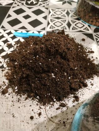 Mélanger la terre récolté avec de la terre de composte. Mettre de côté.