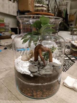 Pascal ouvre les portes de sa boutique pour partager son savoir-faire. Pendant 1h30 avec patience et enthousiasme, il va transmettre sa passion à 6 jeunes femmes pleines de curiosité. Une fois le temps imparti passé, chacune repart ravie avec un terrarium.