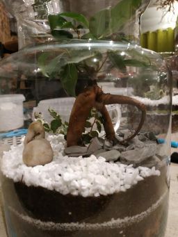 Dernière étape, décoration finale. On peut varier avec du sable, des cailloux, des pierres….