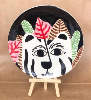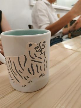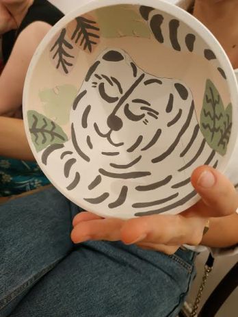 Chacune des participantes choisie le support de son choix entre assiette, bol et mug. Puis vient le choix de l’animal avec le décor. Sleepy Tiger remporte le plus grand succès.