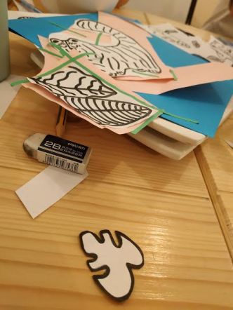 Une fois les bulles sèches, je dessine les motifs que je vais devoir peindre.