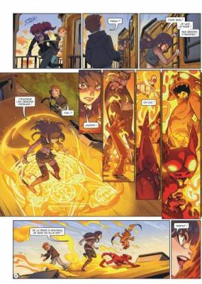 Un enthousiasme sincère se faisait en retrouvant la suite des aventures de Magic 7. Il faut dire que Kid Toussaint à l’art et la manière de construire du suspens. Petit à petit, il nous dévoile les personnalités des adolescents qui doivent faire face à leurs suspicion, à leur famille et à leurs amis. Sont-ils du côté du bien ou du mal ? La frontière est assez floue pour qu’aucune vérité puisse en émaner. Alors il construit des mystères, des énigmes complexes d’où quelques faits apparaissent. Le doute de leur véracité s’impose. Ce tome avec ces combats contre dinosaure, morts-vivants et même des habitants envoutés montre la complexité de leur situation. Une façon d’explorer d’une part les tempéraments qui s’affirment et leurs dons qui peuvent prendre de l’ampleur. Kenny Ruiz met au service son talent de dessinateur pour nous proposer des mises en scène explosives, rompant sans scrupule le classicisme avec des casses bien droites et alignées. Quand Milo est attaqué par des zombies, le personnage est dans un rond et tout autour avec des lignes en forme d’étoiles où l’ont voit les monstres s’approcher. Une sensation d’étouffement se créée. Un très malin jeu de structures qui donnent tout le dynamisme à l’histoire. Et enfin, Noiry qui conserve la même gamme de teinte que les tomes précédents. Cela ne l’empêche nullement de contribuer à cette fougue et cette énergie qui se dégagent. Bref, tout se lit avec plaisir amplifiant la curiosité pour savoir ce qui va se passer par la suite. C’est avec impatience que je vais aller me plonger dans le tome 7.