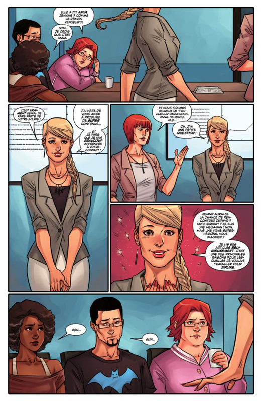 Ce n’est pas facile d’être une super-héroïne. Mais maintenant, elle a des amis sur qui compter et un travail qu’elle aime. Elle ne peut pas empêcher les gens de lui en vouloir de faire régner la paix dans la ville. Alors quand un vilain s’en sort, il veut se venger. Pour une fois, ils font alliance. Ils tentent de détruire l’image positive populaire de Faith puis vont la retenir. Un stratagème un peu plus réfléchit que d’habitude. Sauf que les soucis des vilains sont qu’ils sont d’un côté assez bête et de l’autre assez narcissique. Bien entendu cela va les perdre et notre superwoman va pouvoir s’enfuir. En plus, rien ne la déstabilise vraiment car elle retourne le lendemain au boulot comme si rien ne s’était produit. Derrière ces rondeurs se cache une femme forte et courageuse. Elle puisse son énergie dans l’affection des autres car ils l’apprécient comme elle est. Le rythme alterne bien entre moment de calme et d’actions qui nous incite à tourner les pages avec curiosité. On veut savoir d’une part qu’elle est le problème qu’elle va rencontrer et d’autres part comment elle va s’en sortir. Ici, une fois le maillon faible identifié, elle lui parle et se rend compte que parfois un méchant est un gentil qui s’ignore. Par chance, il n’est jamais trop tard pour changer de camp. On sait que l’on va le retrouver plus tard, espérons qu’il a gardé la même optique. Le suspens va être total jusqu’au prochain tome.