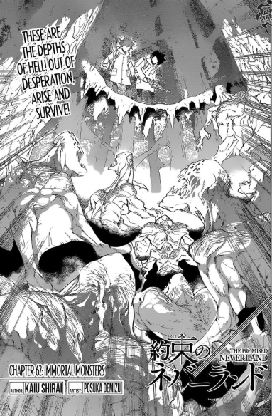 L’inconnu décide de les accompagner à Goldy Pond, le deuxième site de Minerva. Emma et Ray vont le suivre où qu’il ira en restant sur leurs gardes. Il connaît le chemin et aussi les ennemis qui rôdent dans cette forêt. D’ailleurs, ce jeune homme va tout faire en tout discrétion pour que les deux compagnons meurent assez vite. Par malchance pour lui, les deux enfants tiennent le rythme et réfléchissent. Même quand un monstre bondit sur eux pour les dévorer, leur point faible s’identifie assez vite. Le souci est que le nombre de leur munition descend et qu’il va falloir faire attention. Qu’importe rien ne pourra se mettre sur leur chemin. Du moins, c’est avant qu’Emma parle à coeur ouvert à cet anonyme. Elle comprend ce que c’est de perdre quelqu’un qu’on aime. Alors perdre tout ces amis, elle imagine très bien le gouffre intérieur que cela peut procurer. Mais il se doit de conserver la volonté de se sauver et de soutenir ceux qui partage son même espoir. A peine a t’il le temps de se rendre compte de son comportement que la fille se fait enlever par un certain braconnier. Un hasard? Absolument pas. Qu’importe maintenant il faut choisir. Pour Ray, il est impossible de l’abandonner. Emma quand a elle découvre l’autre face de Goldy Pond. Un village avec de nombreux enfants élevés dans des fermes qui servent de proie aux monstres. Une course poursuite sanglantes comme divertissement. Il faut mettre un terme à cette chasse pour le bien de tout le monde. Un combat acharné s’annonce.