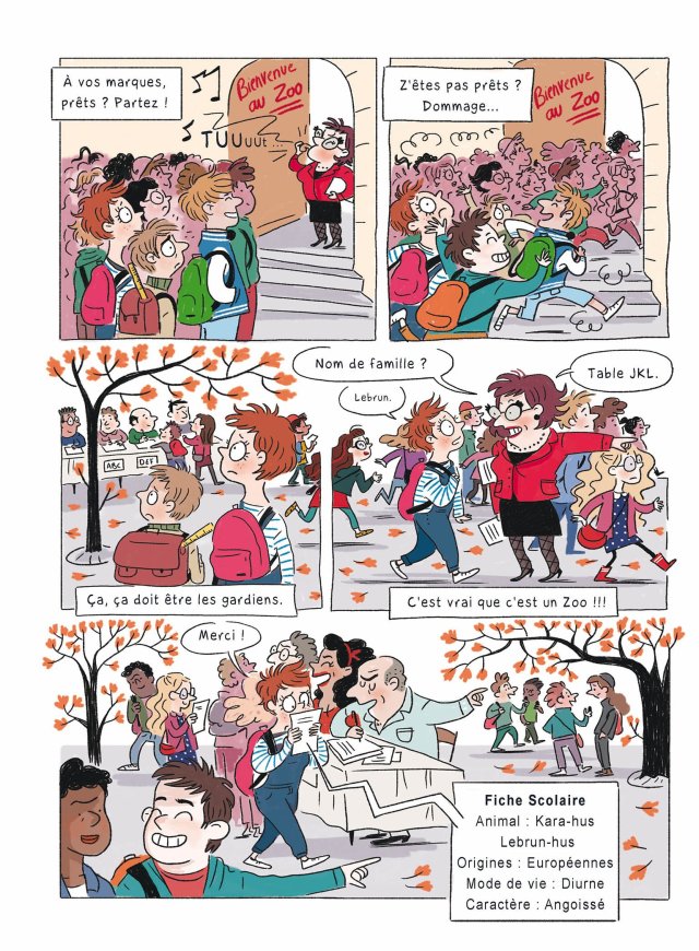 Comment ne pas appréhender un nouveau changement? Kara va rentrer dans un nouveau collège et en 4ème en plus. « Je vais connaître personne quelle horreur quelle horreur!! ». Elle a prévu son paquet de bonbons pour faire du lien. Mais presque tout le monde se connaît. Il y a forcément d’autres nouveaux avec qui sympathiser. Elle sait à quoi s’en tenir en franchissant les portes d’entrée avec le mot « Bienvenue au zoo ». Par chance, au cours du maths, une charmante demoiselle lui fait une place à côté d’elle. Rosita vient de débarquer aussi dans l’école. Un point commun qui est le départ d’une belle amitié. Surtout qu’elle partage aussitôt leurs coups de coeur et leurs coups de gueule. La tranquillité n’est pourtant pas de mise car à la maison c’est une autre histoire. Avec une maman très impliquée professionnellement, deux petits frères et soeurs très dynamiques et un papa à la maison très occupé, elle n’a jamais le temps de s’ennuyer. D’autant plus qu’elle doit gérer les cours, les courses, la vaisselle… Même si ce n’est pas facile tous les jours, joie, rire et tendresse sont au rendez-vous. Un tout qui permet de faire chaque jour une aventure pour vivre une année mémorable.