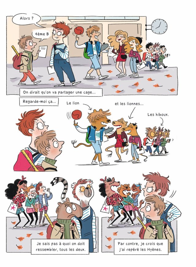 Louise Mey met son talent d’auteure au service d’une adolescente qui cherche sa place au sein de l’école et de sa famille. Arriver dans un nouveau collège est déjà quelque chose de difficile à gérer. Cependant il faut aussi appréhender les changement de son corps, le rapport aux autres, la différence dans la mode, trouver sa place dans une famille nombreuse… Tous ces sujets sont abordés avec beaucoup de positivité et de bienveillance. La modernité se montre par un papa qui reste à la maison et des activités avec toute la famille qui s’aime. La dessinatrice Isabelle Maroger n’est pas en reste avec son dessin énergique au crayon apparent avec des touches de couleurs vives. Impossible de ne pas s’attacher aux personnages dès le premier regard. Notre héroïne, Kara, est rousse tout comme sa maman et un chat. Un félin adorable qui montre autant sa filouterie que sa tendresse. Un élément indispensable à la série qui sait donner le sourire. Un duo de choc qui propose une série adorable, touchante et réaliste. Aucun doute que les jeunes collégiennes se retrouvent dans Kara aussi bien dans son humour que dans son malêtre.