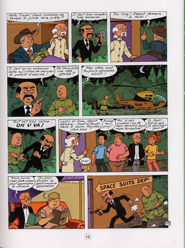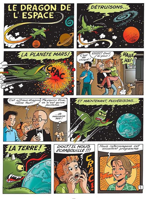 Lire les 4 As est une façon de voyager dans le temps. Bonjour structure classique avec des casse biens dessinées, des bulles assez grosses, des personnages très clichés et une histoire assez capilotractée. Quatre adolescents avec des caractères très marqués. Un scientifique qui ne pense qu’à la science et qui analyse tout sous cette angle. Un jeune homme pragmatique qui essaie de temporisé toutes les situations. Le gros qui ne pense qu’à manger. Et enfant la fille qui ne se préoccupe que de son apparence, n’est pas très intelligente et qui a souvent peur. Un ensemble d’héros solidaires mais qui manquent cruellement de personnalité vraisemblable. Est-ce que l’on peut reprocher vraiment cela malgré plus de 42 tomes? J’ose car je ne prévois pas de lire toute la série. En sachant comment sont les personnages principaux, on sait qu’il ne faut pas s’attendre à un scénario recherché. On passe sur l’absence de réalisme du voyage vers l’espace. On zap également le comportement des supers vilains qui sont aussi méchants que bêtes. Faut-il alors s’attarder sur la rencontre avec des petits hommes verts qui parlent la même langue que ces humains? Pourquoi ne pourraient-ils pas être vert et intelligents? Au moins Georges Chaulet les imagine plus brillants que certains de ces compères. On peut trouver des points positifs dans cette bd. Cependant je n’ai pas envie de renouveler l’expérience de relire des aventures de ces quatre amis stéréotypés. Un vent de modernité a soufflé sur la bd depuis avec des enfants plus normaux rencontrant des soucis réalistes.