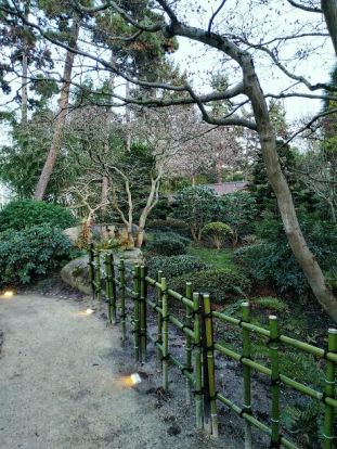 Le village japonais, plus ancien, abrite-lui un pavillon offert en 1966 par l’école Urasenke du thé à Kyôto, où l’on peut assister à une cérémonie du thé, et deux maisons traditionnelles construites sur pilotis en bois cernées de bonzaï.