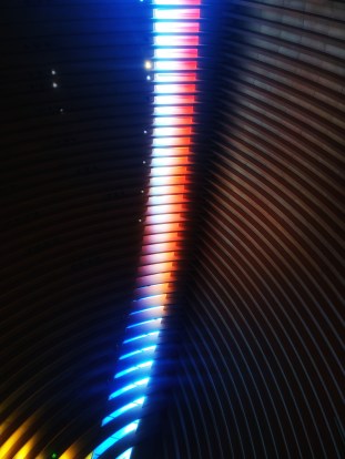 Le plasticien verrier Udo Zembok a créé un ensemble de vitrail d’une longueur de 55 m composé des couleurs primaires. Dans l’espace, l’arc semi-circulaire s’ouvre d’est en ouest comme seule source de lumière naturelle. Selon le moment de la journée et du temps extérieur, une ambiance particulière illumine les lieux. Une lumière synthétique illumine toute la journée le site.