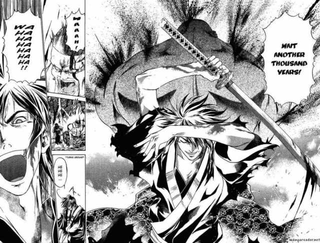 La bataille de Sekigahara a changé considérablement l’Histoire du Japon. Les morts se comptent par milliers. Certains combattants dont de nombreux samouraïs ont survécu. Aujourd’hui ils errent en quête d’un nouveau sens à leur vie surtout que les samouraïs n’ont plus le droit d’exister. Mais un particulier à marquer les esprits, un tueur sanguinaire, Kyo aux yeux de démon. On ne calcule plus le nombre de ces victimes tellement elles sont nombreuses. Sa tête est mise à prix et les chasseurs sont à ces trousses. 4 ans après la bataille, n’est-il pas vain de chercher encore après lui, on ne sait même pas s’il est encore en vie. Yuya, une pulpeuse blonde aux yeux bleus, sait qu’il est en vie et est persuadée que c’est le gars un peu bizarre qui transporte des médicaments dans ces bagages. Il soutient que non, que c’est un vagabond avec un sabre, c’est tout. Elle va user de ces charmes pour le manipuler et arriver à ces fins. Même s’il renie être l’homme qu’elle recherche, elle reste persuadée d’avoir attrapé le bon poisson. La réponse se fera assez vite quand il va falloir faire face à des tueurs sanguinaires. Il prévient : « il arrive ». Et quand il est là, c’est dommage pour les méchants car ils vont devoir tous trépasser grâce à une lame précise et un combattant cruel et sans pitié. Kyo a une très grande maîtrise et arrive à couper en petits morceaux les ennemis récalcitrants. Mais il a d’autres techniques en poche qu’il n’hésite pas à utiliser en cas de grand danger.