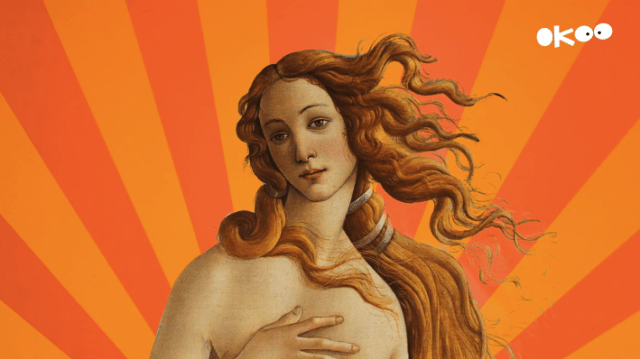 Vénus est née adulte dans une coquille St Jacques. Elle serait née de l’écume des mers poussée par le dieu du vent Zéphyr et sa copine. Une femme lui apporte un manteau à fleur car elle est toute nue. Sandro Botticelli fait une rupture avec la peinture religieuse de l’époque. Vénus à la place de Marie, c’est un choc mais cela permet de relancer le nu. Comme c’est une déesse ce n’est pas trop grave que les proportions ne soient pas respectées. (Saison 1 – Episode 23)