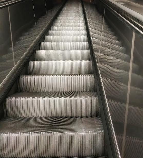 Un escalator qui ne pourra nous mener que chez nous. Sur le départ de rester chez soi.