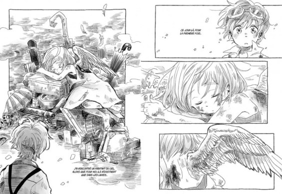 Bienvenus dans la ville jaune où l’on ne voit jamais le ciel. Les usines crachent inlassablement leur fumée masquant le monde. Mais faut-il voir les étoiles pour savoir qu’elles existent? Théo a toujours espéré d’en voir car il les découvert dans des livres. Des lectures qui l’on emmené plus loin qu’il ne pourra jamais allé. Acceptant la réalité, il garde au fond de son esprit ce rêve et s’applique dans son travail à l’atelier de réparation de M. Chikuwa. Son quotidien va être totalement chamboulé quand il va dans une décharge ou l’île des rêves comme il aime l’appeler. Au milieu des déchets métalliques, il découvre une petite fille inconsciente avec une aile. « J’ai rencontré un habitant du ciel alors que pour moi, ils n’existaient que dans les livres ».