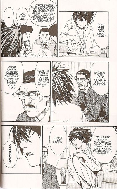 Light/Kira a trouvé une faille dans le raisonnement de L. Faire suivre les policiers japonais par le F.B.I. ne serait pas du goût de tout le monde. Il ne peut pas le dire à son père sans attirer l’attention sur lui. Pour régler le problème, il faut juste éliminer l’ensemble des agents infiltrés. Comment avoir leur nom? C’est assez simple, trouver un agent, Raye Penber, celui qui le suit et lui faire du chantage pour avoir le nom de ces collègues. Un petit jeu très simple qui a permis d’éliminer pleins d’ennemis d’un coup. Mais cet acte a donné beaucoup d’informations à L et il s’est attiré les foudres d’une nouvelle personne, la fiancé de Raye Penber, ancienne agent du FBI. Maintenant, elle n’a plus rien à perdre et peut se concentrer uniquement sur l’arrestation de Kira. D’ailleurs toute seule dans son coin, elle est déjà arrivée à des conclusions très prometteuses. Heureusement qu’elle a confié tout cela à Light qui va pouvoir la tuer en toute discrétion. L. lui aussi aiguise sa stratégie car lui aussi à identifier le mort n°1 lui permettant de faire des hypothèses sur le coupable. Et dans la ligne de mire brille l’identité de l’adolescent. Des preuves suffiront-elles à l’incriminer?
