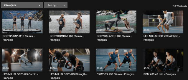 Lesmills et l’Appart Fitness, proposent 95 cours en vidéo dans 8 styles d’entrainements différents et complémentaires. Il faut avoir tout de même avoir pratiqué ce genre d’exercice auparavant et avoir du matériel. Transpiration garantie.
