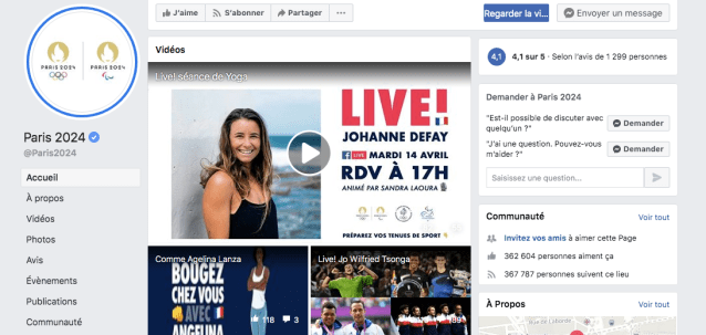 Paris 2024 propose des lives avec des athlètes sur sa page Facebook afin de partager des exercices et aussi des retours d’expériences professionnelles. Beaucoup de diversité dans les exercices proposés et pour tous les niveaux.