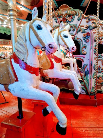 J’ai hésité à prendre en photo le manège silencieux qui est sur la place publique dans la ville à côté de chez moi. Mais j’ai préféré mettre des photos que j’ai prise d’anciens manèges.