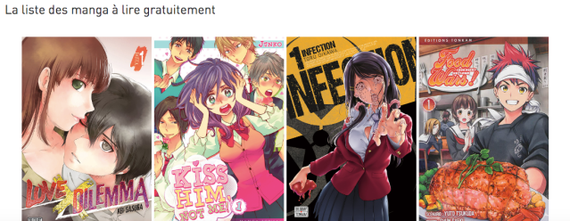 de mangas (il faut cliquer sur le manga pour le lire) et même principe chez Soleil Manga