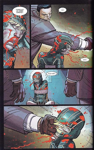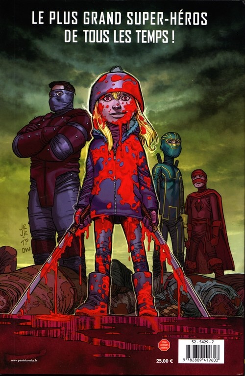 Enfin on en apprend plus sur le duo de choc entre Hit-Girl et Big Daddy. En toile de fond de l’histoire principale, on assiste à la formation de notre héroïne de 10 ans. Quand les petites filles voulaient des poupées, elle préférait des armes à feu et coup de poing américain. Chacun ces centres d’intérêt dans la vie. Son père la forme aussi au cinéma et à la connaissance légale. Mark Millar insère des petites critiques de la société par exemple sur la définition d’un républicain. « Un connard prêt à manifester pour le droit de tuer des bébés et qui organise des veillés aux chandelles pour des tueurs en série ». Une façon de mieux présenter ces deux héros de l’ombre. Car la vengeance guide leurs pas dans lesquels le sang s’écoule. On s’attendait à une bonne baston avec un règlement de compte. Nous aurons cela mais certainement pas comme on s’y attendait. Les cadavres sont s’accumulés au fur et à mesure des pages. Ame sensible s’abstenir car scènes violentes garanties partout. John Romita Jr ne fait pas de l’horreur pour le plaisir, il faut cela fasse sens dans une identité graphique reconnaissable et unique. On prend un uppercut graphique qui nous scotche à l’histoire. Mark Millar nous coud un scénario de haute volée qui ne nous laisse aucun repos. La psychologie du simple héros ordinaire se complique face à la trahison, à la violence et au rejet. Notre tueuse doit laisser les armes à feu cachées pour devenir une petite fille ordinaire. Une nouvelle page se tourne. Est-ce vraiment possible que tout revienne à la normale?