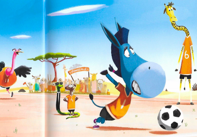 Marc Levy met de nouveau sa plume au service de littérature jeunesse pour expliquer une expression populaire. Comme dans l’expression il y a une référence à un animal, l’histoire ne pouvait qu’être avec des animaux. La diversité se trouve dans la réalité par conséquent elle se trouve dans le récit. L’équipe de football est composée d’un panda, d’une autruche, d’une girafe… Lili refuse d’écouter les autres et pense avoir toujours raison. Le sens d’être têtu comme une mule devient limpide. Aucun doute que les enfants vont comprendre ce que cela signifie. Bien souvent ils refusent de faire des choses et acceptent bien rarement de céder. Florent Bégu apporte beaucoup de dynamisme et d’énergie sur chaque page pour rendre l’histoire sympathique et chaleureuse. Surtout qu’il faut trouver un serpent caché au fur et à mesure. Une manière de rendre la lecture plus dynamique.