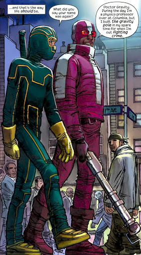 Dans la rue, il n’était plus seul. Il a rencontré Doctor Gravity, un gars un peu comme lui, en version adulte. Ce n’est que le début de la surprise, car il va rejoindre une ligue de super-ordinaire héros. « C’est le truc le plus cool que j’ai jamais vu ». Avec sa petite équipe, ils vont rendre des comptes à criminels qui exploitent les enfants à des fins sexuelles. Le pauvre Jimmy Kim… Il faut espérer qu’il ne tenait pas tellement à son service trois pièces. C’est fou comme un chien dressé peut attaquer à des endroits bien ciblés. « Putain de merde! Mes couilles! ». La team augmente progressivement aux fur à et mesure de leurs actions qui peuvent être donner du sang, être bénévole au dispensaire, distribuer des avis de recherches…