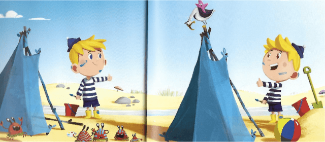 Marc Lévy met son talent d’auteur populaire au service de la littérature jeunesse. Pour expliquer l’expression « comme deux gouttes d’eau », il décide de faire le parallèle avec des jumeaux. Un choix qui paraît judicieux puisque cela veut dire deux choses identiques, d’ailleurs la couverture explique très bien l’ensemble. Presque toute l’histoire est résumé ainsi ce qui confirme qu’un dessin vaut souvent un long discours. Mais on peut se demander pourquoi créer une île où deux enfants seraient livrés à eux-même et pourquoi doivent-ils traire des vaches naines? Un choix un peu étrange car les frères auraient pu vivre à notre époque ce qui faciliterait l’identification du jeune lecteur. Et pourquoi mettre des vaches dans cette histoire? C’est assez rare que des enfants traient des vaches à 10 ans. Florent Bégu propose un univers graphique plein d’humour et de douce folie. Surtout qu’il faut trouver sur chaque double page une étoile de mer. Une belle occasion de passer du temps pour regarder les riches détails parsemés ici ou là.