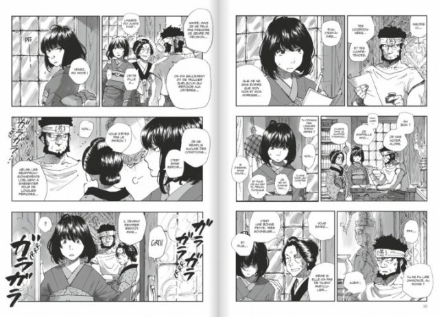 Le trait clair et précis de Kan Takahama nous donne envie de tourner les pages. Les personnages ont vraiment des visages très expressifs et sont bien différents les uns des autres. Elle n’oublie pas non plus de rentrer dans les détails pour mieux nous plonger dans ce contexte historique un peu particulier. D’ailleurs, elle donne des informations historiques aussi bien sur le pays que sur des expressions, des techniques… On peut même faire une recette de cuisine d’une gourmandise qui se rapproche d’une certaine façon de nos crêpes. L’aspect culinaire n’est pas mis de côté. Aucun aspect de la vie et des liens sociaux n’est omis. Ce n’est pas hasard qu’elle a été récompensé au Japon par le Grand Prix Osamu Tezuka, pour sa dernière série: « La Lanterne de Nyx ».