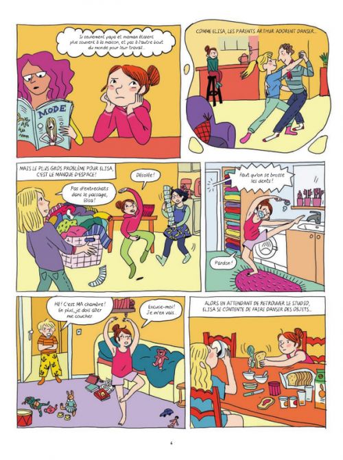 Dans la famille Arthur, nous demandons Elisa. C’est la 5ème fille d’une fratrie de 7 enfants dont 1 garçon. Chacun des sœurs et frère possède une passion qui l’anime. Pour Elisa, c’est la danse. Elle se voit déjà en haut de l’affiche comme danseuse étoile. Mais pour y arriver il faudrait qu’elle sache faire des pointes. Seulement voilà, sa professeure de danse le refuse. Tant pis, un peu caché des autres, elle essaie avec difficulté. Ce qui contrarie beaucoup l’enseignante car son corps n’est pas prêt à ça encore. Ces jeunes si passionnées et si impatients à la fois. Pareil pour le stage de danse pendant les vacances. Elisa voudrait vraiment le faire. Toutefois, les parents ne peuvent lui autoriser car financièrement, ils ne peuvent le faire pour tous les enfants. Voilà une nouvelle qui la contrarie indubitablement. Il faut juste qu’elle trouve l’argent. Le souci repose sur son âge car trop jeune pour travailler. Alors que peut-être en dansant dans le métro, elle trouvera ce qu’elle a besoin ? Que nenni. N’y a-t-il pas une personne dans la famille qui a réponse à tout ? Mamie Léo sait toujours comment sauver les situations. Elle permettra à la demoiselle de faire ce qui lui fait tant plaisir contre une journée exceptionnelle avec sa grand-mère. Et quand elle voit ces pieds grandir ce qui l’inquiète. Mamie Léo sait comment s’y prendre pour lui faire accepter son corps tout entier. Une famille unit dans le pire et surtout dans le meilleur et pour le rire.