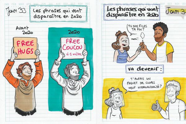 Pour la nouvelle année 2020, Sophie Lambda se fixe un objectif en dessinant dans un carnet. « Alors j’ai commencé à dessiner le quotidien, des tranches de vie. Les journées banales peuvent toujours contenir un moment drôle à dessiner. » Malgré une motivation mitigée, au début elle fait quelques dessins de rencontres, de gourmandises, de voyage, d’examen médical… « Ce carnet n’était pas destiné à être publié, ni même montré sur les réseaux sociaux. C’était un truc perso, imparfait. Je ne mettais pas la pression pour réussir tous mes dessins du premier coup. » Puis un jour, le samedi 14 mars 2020, tout a changé. Tout le monde se met à parler du Coronavirus ou Covid-19. Et le 16 mars 2020, le Président de la République prend la parole et annonce « Nous sommes en guerre ».