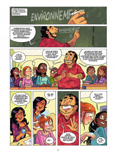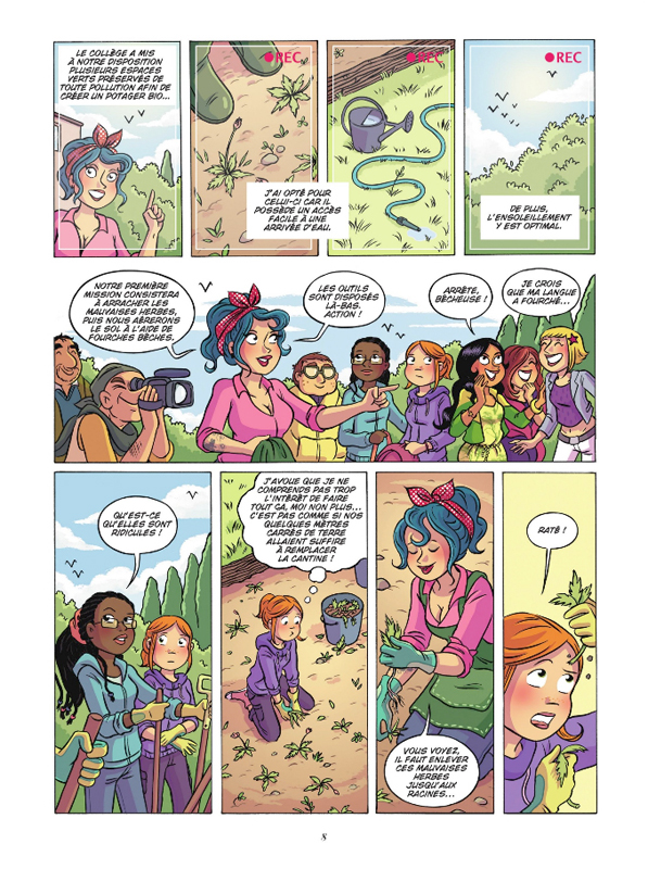 Mistinguette ne s’ennuie jamais. Greg Tessier et Amandine trouvent toujours des aventures à lui faire vivre. Cette fois-ci, ils s’approprient un sujet dans l’air du temps : l’écologie. Au collège, on peut encore sensibiliser les enfants au monde qui les entoure. A travers une expérience en contact avec la terre des adolescents découvre la valeur du travail manuel et la possibilité des actions possible. Il est possible de mener des actions au-delà de ce qui est demandé aussi bien à l’école que chez soi. Même si ce n’est pas toujours facile, les choses peuvent changer et on peut transformer le comportement les gens. Chloé dit Mistinguette incite sa famille à modifier des habitudes. Une jolie leçon que le changement est possible maintenant et que pour cela il faut s’impliquer et pousser ceux qui nous entoure. Une bd efficace qui saura toucher de nombreuses adolescentes. Le tandem de choc a su trouvé son public car nous sommes au onzième tome. Leur travail a même donné naissance à une autre série : « Cartoon » qui raconte la vie du chat de la famille. Cette même famille que dans Mistinguette, avec un couple de parent vivant ensemble et qui sont heureux, souriant. Ils ont une fille et un garçon. Une famille parfaite dans l’écoute et le partage, qui peut-être existe vraiment dans la vraie vie. Elle semble bien entendu trop idéale et loin de la réalité sociale. Mais après tout, pourquoi pas imaginer un monde meilleur pour faire passer des messages gentils, positifs et bienveillants ?