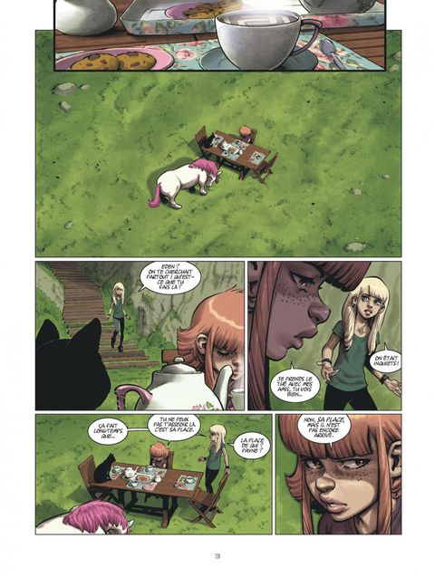 J’avais hâte de pouvoir lire la suite qui se fait toujours attendre. Le tome se lit très vite car on est pris dans le récit qui comme d’habitude s’arrête précipitamment. Comme beaucoup de bd jeunesse, les histoires trainent sur 2 ou 3 tomes au lieu d’en faire un plus épais. Après on peut comprendre aussi l’enjeu économique qui se cache derrière. Au vu du travail réalisé, il est préférable de faire plus de tome un peu moins cher qu’un seul plus cher. Toutefois, cela fait que je lis moins de bd jeunesse car j’ai l’impression que l’on veut toujours m’inciter à acheter plus comme un manga. La frustration étant souvent présente, je m’abstiens. Ou j’attends que toute une série soit publiée et je vais l’emprunter en médiathèque. Cependant, cela ne remet pas du tout en cause le magnifique travail de Mathieu Reynès. Il arrive tome après tome à garder son univers graphique qui plaît toujours autant. Et surtout, il arrive toujours à construire une intrigue avec des rebondissements qui nous incitent à tourner les pages rapidement pour connaître le fin mot de l’histoire. Dans ce tome, on retrouve moins nos adolescents adorés. On change de point de vue et d’action avec le côté des méchants sans cœur et sans pitié. Il faut bien les détester pour être ravie de leur destruction. Le combat final n’est pas encore pour demain. Selon les ventes, il va falloir s’armer de patience et prendre le temps de relire toute la série.