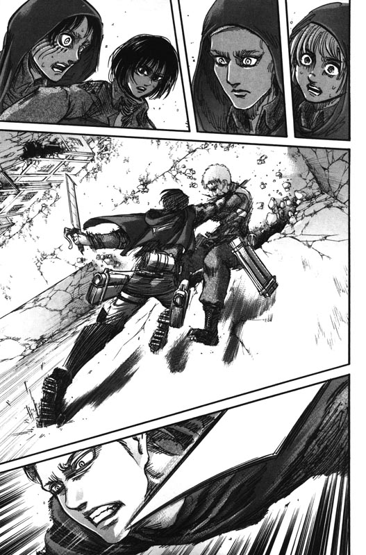 Eren va pouvoir en savoir plus sur sa famille grâce au sergent Shardiz. L’espoir est très grand d’avoir des éléments de réponses aux questions que se pose le garçon par rapport à son père. Toutefois, le récit du sergent n’apporte guère de données. A part peut-être qu’en effet, il ne venait de la muraille mais bien de l’extérieur. Cela confirme qu’il existe bien une société en dehors des murs et qu’il y a un sens à ces titans. En attendant de pouvoir se pencher davantage là-dessus, il va falloir autre chose : reconstruire le mur Maria. Une aventure périlleuse et tout le monde compte sur Eren pour mettre sa force du titan au service du bien. Cependant, même avec une bonne préparation, il n’est pas facile de faire face à l’imprévu. Et une fois encore, l’ennemi est présent sur site et leur tend un piège. Déjà, c’est difficile de les affronter en mode humain cela va l’être d’autant plus en mode titan. Tout le monde ne pourra en réchapper. L’issu du combat doit-il être la mort de tout le bataillon ?