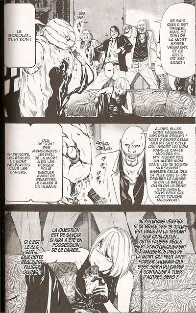 Pas de tranquillité pour le lecteur non plus. Au lieu d’avoir un seul ennemi, Kira en a maintenant 2. Et pas des gens sans envergure, ni intelligence, des vrais adversaires à sa mesure. On connaît les identités de tous les joueurs, il reste à définir des règles du jeu. Un trio où tous veulent sortir vainqueur qu’importe le nombre de morts laissés sur le chemin. Quelles compromissions sont-ils prêts à faire ? A la fin, peut-il vraiment en rester qu’un ? Tous les ingrédients sont posés pour inciter le lecteur à poursuivre la série pour savoir comment chacun va essayer de piéger l’autre. Un nouvel acteur apparaît avec un nouveau dieu de la mort au physique d’une glace qui fond. Va-t-il apporter quelque chose ? On le sera dans la suite. Les pages se tournent avec curiosité et attention car beaucoup d’informations sur les personnages. Mello malgré une apparence féminisme est un garçon. (N’y voyez là aucune remarque transphobe.) Dommage d’avoir choisi un combat de coq sans y mettre une pointe féminine à part Misa, jeune femme assez simplette. Espérons qu’il ne faut pas y voir un message que seul les hommes sont doués d’intelligence. Fermons la parenthèse. La fin de la série va arriver assez vite, espérons que Tsugumi Ohba a su trouver tous les éléments pour surprendre et combler son lectorat. Nous le serons bientôt.