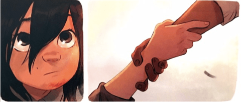 Au premier regard, je suis tombée sous le charme de la couverture. Deux enfants qui courent, un magnifique lion, des oiseaux à la tombée de la nuit sous un magnifique ciel bleu étoilé tout est réuni pour nous intriguer. Puis il y a cette autocollant « Par l’autrice de Les carnets de Cerise ». En fallait-il plus pour m’inciter à la lecture ? Absolument pas. Et dès les premières cases, nous sommes emmenés dans un ailleurs mystérieux. Le jeune lecteur se retrouver face à une enfant qui ne veut pas déménager. Puis elle se plonge dans une lettre écrite par sa grand-mère. Des enfants peuvent connaître et aimer ce mode de communication. Un courrier demande de prendre du temps pour l’écrire et demande à celui qui la reçoit de prendre le temps de la lire. Un temps nécessaire puisqu’on va faire un bon dans le passé, dans l’histoire de cette mamie, enfant. Quand on a grandi dans un zoo et que l’on a 9 ans que connaissons-nous du monde ? Pour Lulu aller chercher un lion en Afrique du Sud semblait logique. Comment pouvait-elle savoir qu’ils pouvaient vivre libre sans l’homme ? Quelque chose que dit qu’elle l’apprendra dans la suite des aventures. Pour l’instant, il fallait présenter les personnages principaux avec Lulu et Nelson, puis le contexte de leur arriver dans un pays étranger et amorcer le début de l’aventure. Le garçon se nomme Nelson, il est noir et parle des droits de l’Homme à Lulu. Un prénom, bien entendu, qui n’a pas été choisi au hasard, surtout en Afrique du Sud.