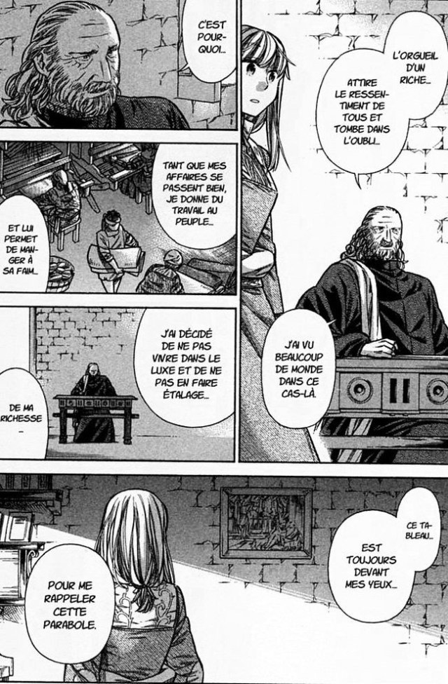 La mangaka évoque dans le cas de l’abus de la jeune fille, le fait qu’elle n’a d’autres alternatives que d’aller au couvent. Elle ira rejoindre celles qui ont subi la même chose ainsi que celles dont le père n’avait pas de dote pour elle. On parquait les femmes qui n’avaient plus de valeur marchande. Dacia qui sait maintenant compter n’arrive pas à se faire respecter même quand elle prouve sa compétence. Elle reste une femme et doit rester à sa place. Et quand elle est influente, les hommes doivent pouvoir les connaître pour les manipuler. Le Cardinal va demander à Arte d’espionner. Même en haut de la sphère sociale, la confiance ne règne pas. Faire sa place pour une femme est difficile. Notre héroïne garde la foi dans son talent et sa bienveillance. Une façon positive de raconter une histoire. Dans la réalité, Arte a pu peindre jusqu’à la fin de sa vie aux côtés de son amant. Est-ce le futur qui attend notre naïve peintre?