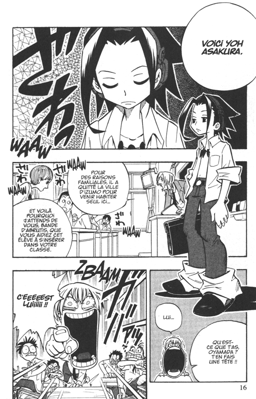 Manta voudrait arriver à temps pour prendre son train. Il décide de prendre un raccourci. Mais que ne va pas être sa surprise de rencontrer des fantômes sur ce terrain abandonné. Tout comme ce gamin de son âge qui leur tenait compagnie. Cette vision lui a donné des ailes pour rentrer vite fait chez lui. Le lendemain à l’école, il raconte à ces copains ce qu’il a vu et ce qu’il gagne se sont des railleries. Quand Yoh débarque, Manta va lui demander de dire devant tout le monde ce qui s’est passé. Il fait l’ignorant. Normal car il possède le pouvoir de Shaman et doit se faire de amis parmi les fantômes pour devenir plus puissant. La curiosité du jeune Manta est piqué. Néanmoins quand il repasse par le terrain abandonné il tombe sur une bande de yakuza. Dommage pour lui, car il a vu et entendu ce qu’ils disaient et vont le frapper. Le lendemain à l’école, on lui pose des questions pour se moquer. Yoh n’est pas d’accord avec ça et va faire régler la justice. Surtout qu’ils ont cassé la plaque en mémoire d’un samouraï, Amidamaru. Un mémorable combat va débuter et aussi le début d’une très belle amitié.