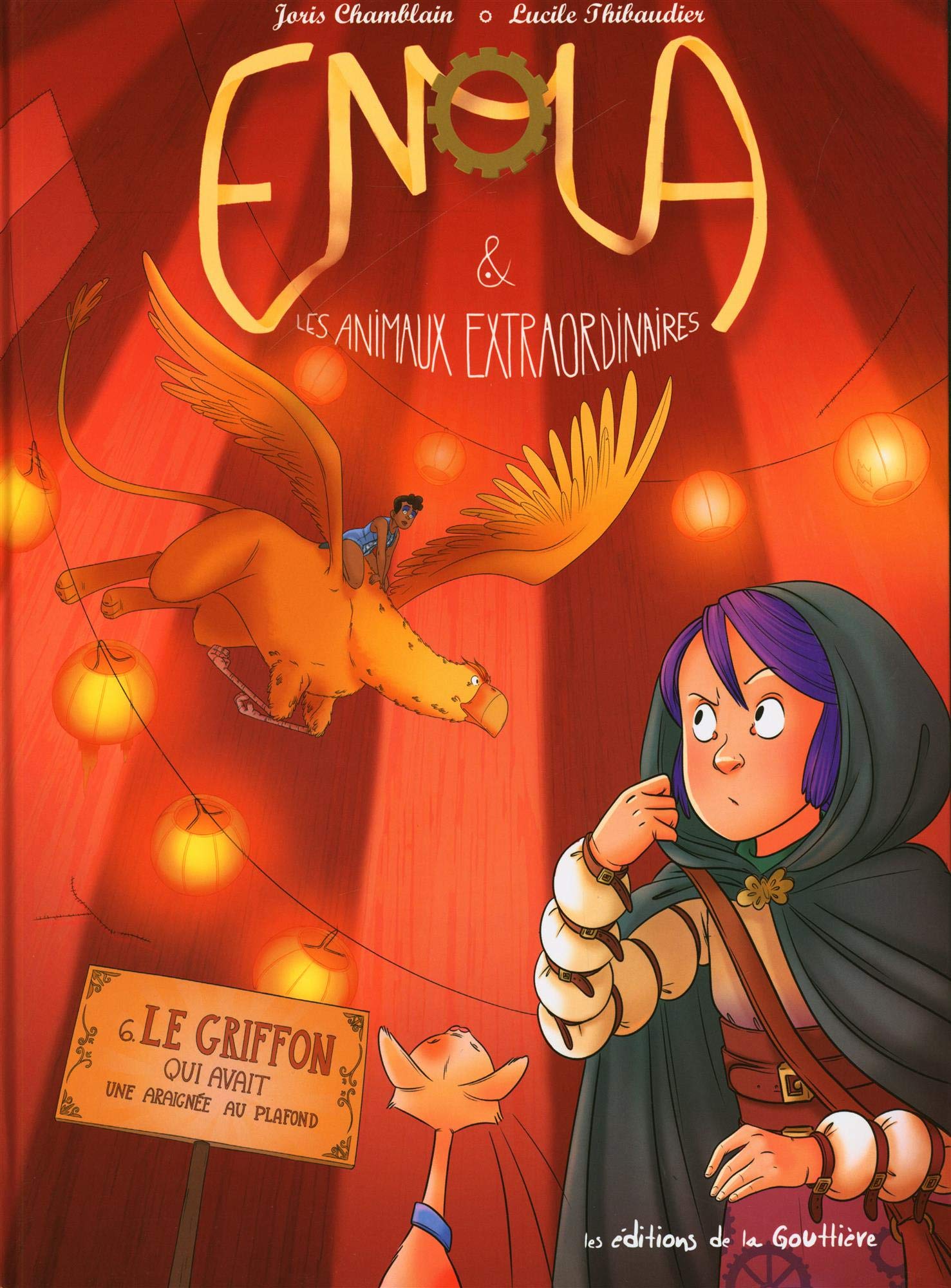 C’est toujours un plaisir de retrouver Enola dans une nouvelle aventure. Une jeune fille vétérinaire qui veille sur des animaux extraordinaires aux exemples de la licorne, le yéti, le loup garou et qui vient à leur aide où qu’il soit. Joris Chamblain décide de nous emmener encore auprès d’un animal mythique, le griffon. Une bête légendaire qui a été capturée tel un animal sauvage comme on peut en voir dans des cirques, encore maintenant. Une façon élégante de dénoncer ces spectacles et de dire que leur place est dans la nature avec leur congénère. Il faut respecter les animaux et ne pas les considérer semblable à du divertissement. On peut voir de l’extraordinaire sous un chapiteau avec le talent des humains. Le message est bien passé et aucun doute que le jeune lecteur le comprenne. C’est la première fois que le duo d’artistes fait passer une telle communication. Manifestement cela leur tenait vraiment à cœur. Lucile Thibaudier laisse son onirisme prendre le dessus pour émerveiller petits et grands. L’intelligence du dessin se trouve aussi dans les détails car on ne sait pas ni où nous sommes, ni à quelle époque. Ainsi on accepte avec plaisir d’être dans un ailleurs merveilleux sans souci. Un nouveau tome qui donne envie de poursuivre la lecture de la série et même de la relire. Un moment que chaque enfant va apprécier sincèrement et simplement.