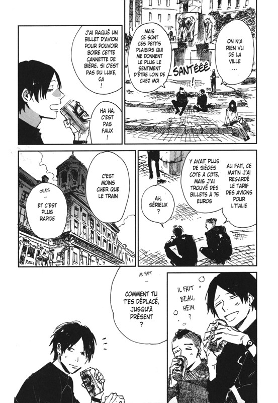 Avant de se rendre à Amsterdam, Ozora fait une halte à Bruxelles. Il se sent un peu perdu car au final, il ne sait pas vraiment se débrouiller tout seul. On l’a toujours aidé quand il était au Japon. A l’étranger, il doit faire autrement surtout qu’il ne parle pas l’anglais. Comme il a de la chance, en Belgique il rencontre un japonais avec qui il passe une journée. Ensemble, ils découvrent la ville aussi bien sur le plan culturel que gustatif. Son copain d’une journée poursuit son voyage. Ozora se retrouve à nouveau seul et doit réfléchir à la suite. Il se rend tout de même à Amsterdam car il doit y retrouver quelqu’un qui va lui donner une autre lettre de sa maman. Une fois en ville, il est charmé par cette architecture si particulière. La personne qu’il devait voir est mort et sa mère aurait été sa maîtresse. Est-ce possible ? Il faut qu’il en discute avec son frère. Lui doute aussi de cela, il y a toujours plusieurs facettes à une histoire. D’ailleurs, il hésite toujours à aller au mariage de son père dont il n’a aucun souvenir. Faut-il qu’il reprenne sa vie comme avant pleine d’ennui et de contrainte ? L’avantage c’est qu’au moins, il n’y a pas d’imprévu et il reste dans une zone de confort. Le message de sa mère avant de mourir n’était-il pas qu’il faut profiter de la vie, de voyager, de rencontrer de nouvelles personnes ? Le jeune homme ne sait pas comment faire. Et quand un ami du Japon qu’il rencontre par hasard lui propose d’aller en Italie, il lui répond par la positive. Pas tout de suite et de façon franche, mais tente l’aventure tout de même. En plus, son frère et un invité surprise, vont le retrouver là-bas.