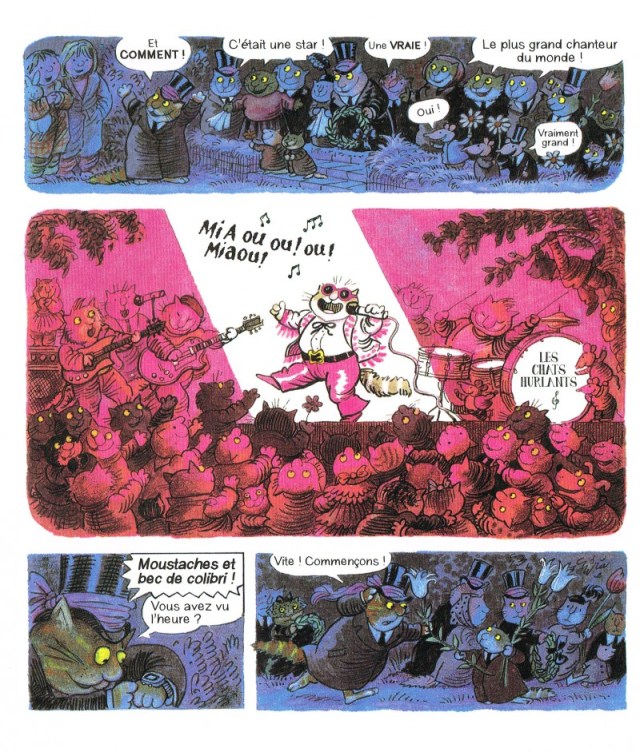 Le chat, Fred a toujours été là, dans la famille. Il dormait aussi bien sur la table à repasser, sur le linge, sur les lits… Puis un jour, il est mort. Au fond du jardin, il va maintenant prendre reposer aux côtés du cochon d’Inde et du scarabée. C’est une chose normale mais les enfants sont tristes, il laisse un grand vide. Même si pour eux, il passait juste son temps à dormir. La nuit venue, en tendant l’oreille, quelque chose se passe dehors. Secrètement, le frère et la soeur sortent et rencontrent un chat en costume. Que se passe t’il? Des chats de partout sont venus de partout pour rendre un hommage à Fred. Les polissons ne comprennent pas pourquoi cet engouement. Ils n’ont jamais su que leur compagnon était le plus célèbre chat du monde. Toutes les animaux présents peuvent en attester. Ensemble, ils rendent un dernier hommage à cet être singulier.