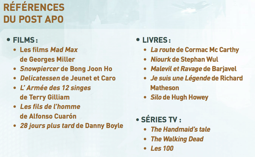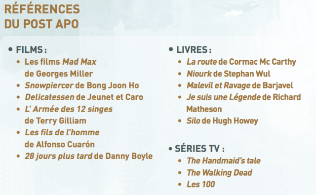 Le tome 4, nous mène à la découverte du thème le post-apocalyptique. Une petite définition s’impose : « La vie telle que vous la connaissez n’existe plus. Une catastrophe, qu’elle soit nucléaire, venue d’outre espace, pandémique, politique, économique ou écologique, a réduit la civilisation à un tas de ruines et les survivants doivent trouver leurs propres solutions pour survivre. Les dits survivants étant bien souvent humains, les solutions sont alors terribles, violentes ou amorales. Dans le genre du Post-apocalypse, c’est souvent un prétexte pour parler de la condition humaine et du fragile équilibre qui sépare un homme, un groupe, une civilisation de la barbarie. Est-ce que la vraie nature de l’homme se révèle-t-elle lorsqu’elle est privée des carcans législatifs qui organisent la cité ? »