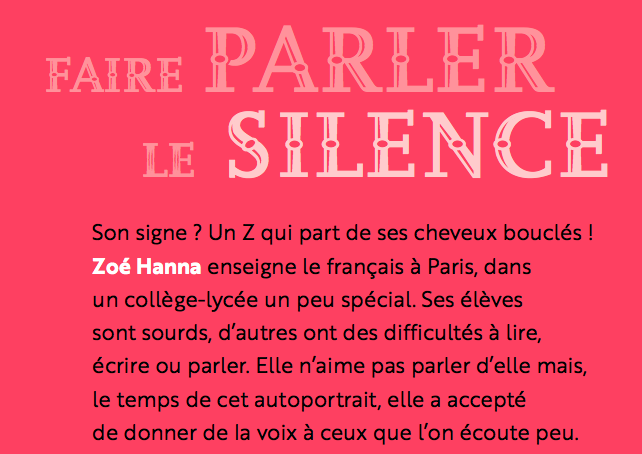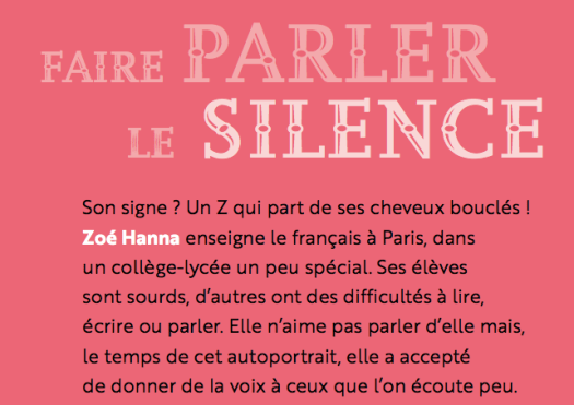 N’y a t’il qu’une seule façon d’enseigner? Zoé Hanna sait pertinemment que non. Elle est enseignante dans une école spécialisée pour des enfants sourds, qui ont des difficultés à lire ou/écrire. Etre différent ne veut pas dire qu’il faut être obligatoirement mis à l’écart. Bien au contraire, avec des cours adaptés, les enfants peuvent tout aussi bien s’épanouir dans le savoir.
